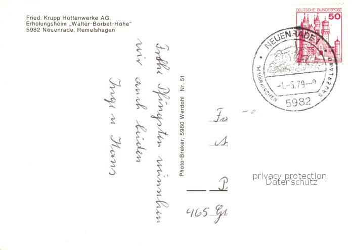 72983968 alte Postkarte Neuenrade Erholungsheim Walter Borbet Hoehe postalisch gelaufen Erhaltung siehe scans [WerneD78] KatCode: 11110005962048