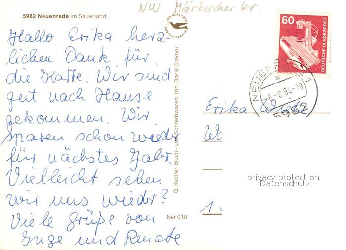 73018738 alte Postkarte Neuenrade Park evangelische Kirche Rathaus postalisch gelaufen Erhaltung siehe scans [NatalD47] KatCode: 11110005962048
