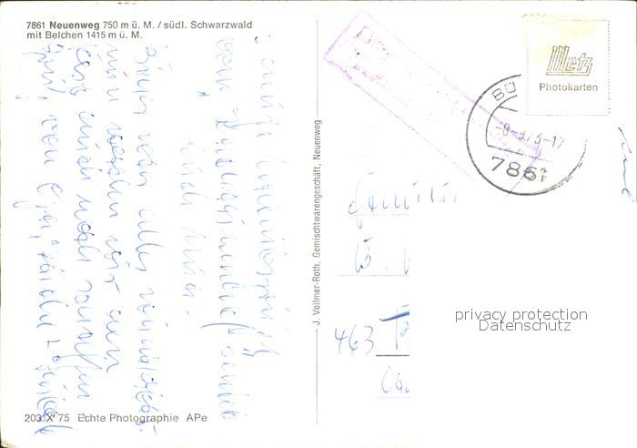 72178828 alte Postkarte Neuenweg Belchen postalisch gelaufen Erhaltung siehe scans KatCode: 11110008336060