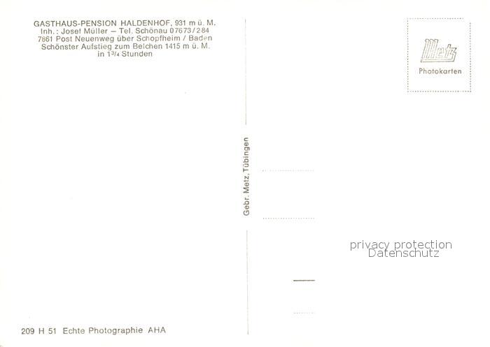 73611106 Neuenweg Gasthaus Pension Haldenhof postalisch nicht gelaufen Erhaltung siehe scans [LiesaD40] KatCode: 11110008336060