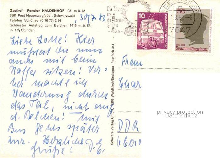72631405 alte Postkarte Neuenweg Gasthaus Pension Haldenhof postalisch gelaufen Erhaltung siehe scans [LiesaD40] KatCode: 11110008336060