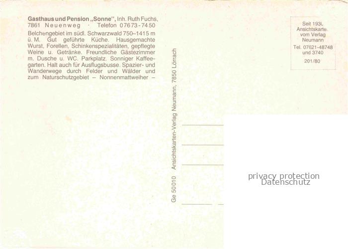 74023689 Neuenweg Gasthaus Pension Sonne Gastraum Landschaftspanorama postalisch nicht gelaufen Erhaltung siehe scans [FriedD77] KatCode: 11110008336060