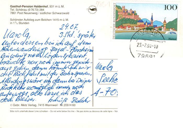 73928321 alte Postkarte Neuenweg Gasthof Pension Haldenhof postalisch gelaufen Erhaltung siehe scans [WerneD78] KatCode: 11110008336060