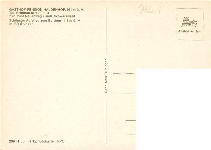 73927587 Neuenweg Gasthof Pension Haldenhof Fliegeraufnahme postalisch nicht gelaufen Erhaltung siehe scans [WerneD78] KatCode: 11110008336060