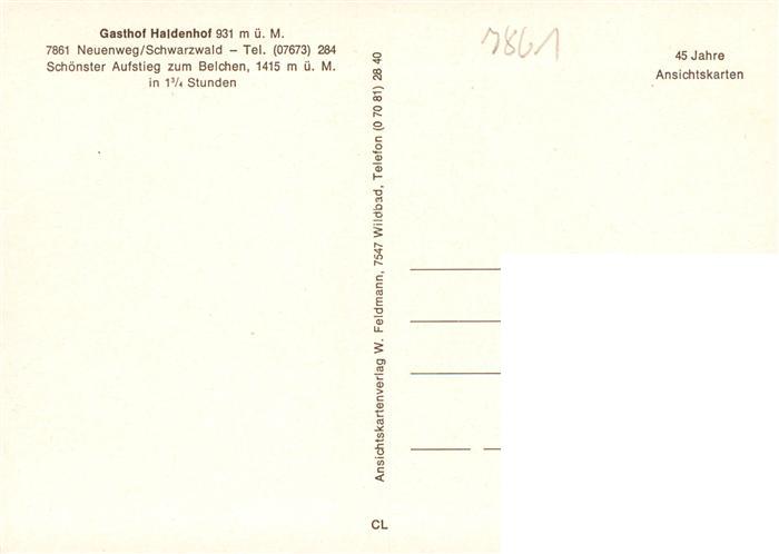 73927591 Neuenweg Haldenhof Strohmeyers Gedaechtniskapelle Nonnenmattweiher Terrasse Belchen Gaststube postalisch nicht gelaufen Erhaltung siehe scans [WerneD78] KatCode: 11110008336060