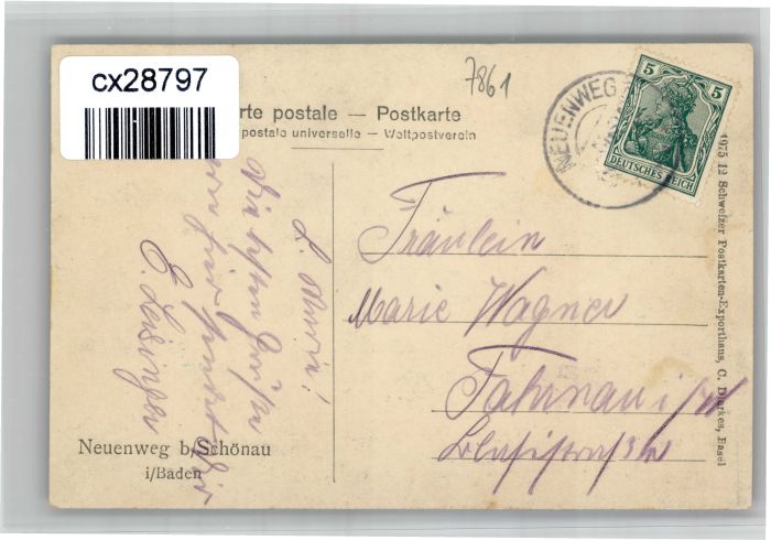 30910625 alte Postkarte Neuenweg Schoenau Baden postalisch gelaufen KatCode: 11110008336060