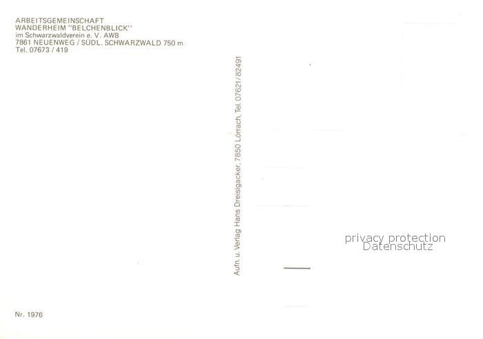 73021170 Neuenweg Wanderheim Belchenblick postalisch nicht gelaufen Erhaltung siehe scans [PaolaD17] KatCode: 11110008336060
