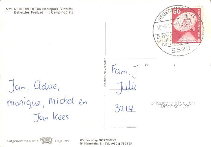 72314367 alte Postkarte Neuerburg Eifel Fliegeraufnahme Camping mit Freibad postalisch gelaufen Erhaltung siehe scans KatCode: 11110007232088