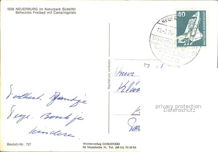72255316 alte Postkarte Neuerburg Eifel Fliegeraufnahme Campingplatz Freibad postalisch gelaufen Erhaltung siehe scans KatCode: 11110007232088