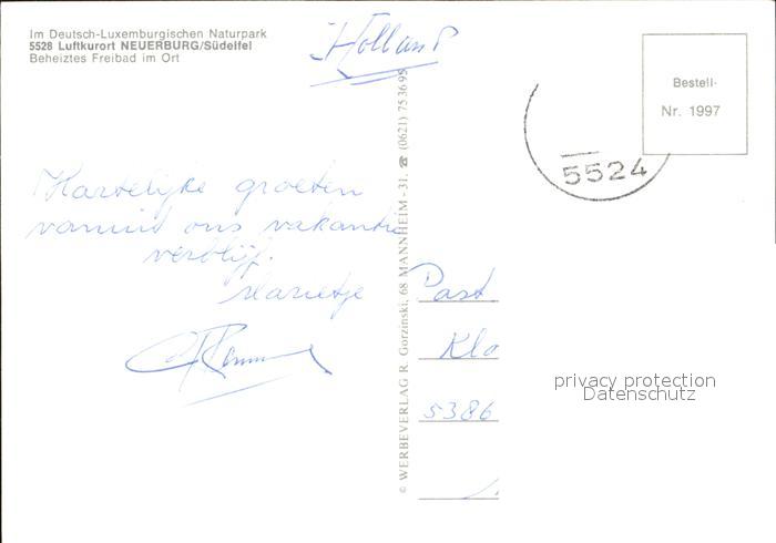 72458979 alte Postkarte Neuerburg Eifel Freibad Burg postalisch gelaufen Erhaltung siehe scans KatCode: 11110007232088