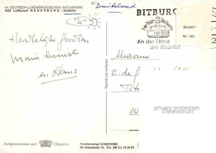 72797763 alte Postkarte Neuerburg Eifel Teilansichten Luftkurort Deutsch Luxemburgischer Naturpark postalisch gelaufen Erhaltung siehe scans [FriedD77] KatCode: 11110007232088