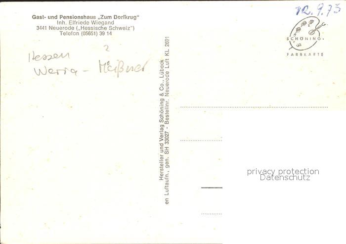 72251710 Neuerode Pension Zum Dorfkrug Gasthaus postalisch nicht gelaufen Erhaltung siehe scans KatCode: 11110006636007