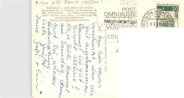 73939917 alte Postkarte Neuershausen March Gasthaus Metzgerei zum Loewen postalisch gelaufen Erhaltung siehe scans [FriedD77] KatCode: 11110008315132