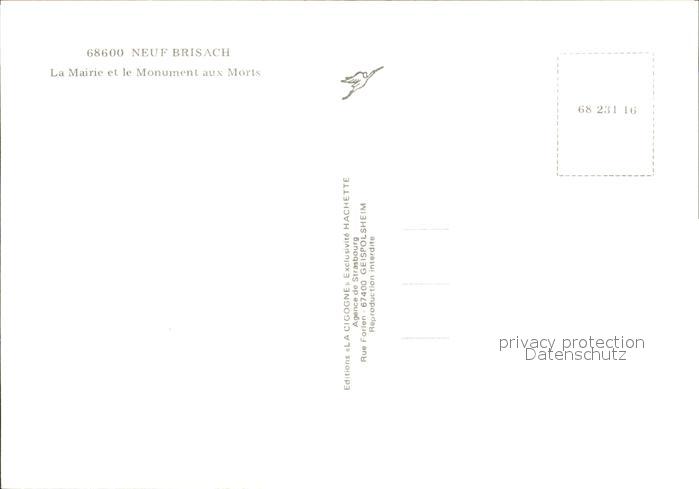 12347445 Neuf-Brisach La Mairie et le Monument aux Morts postalisch nicht gelaufen Erhaltung siehe scans KatCode: 11170068268231