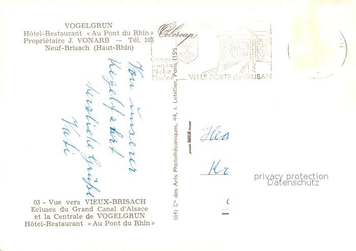 13355839 carte postale Neuf-Brisach Vogelgrun Hotel Restaurant Au Pontdu Rhin postalisch gelaufen Erhaltung siehe scans [WerneD78] KatCode: 11170068268231