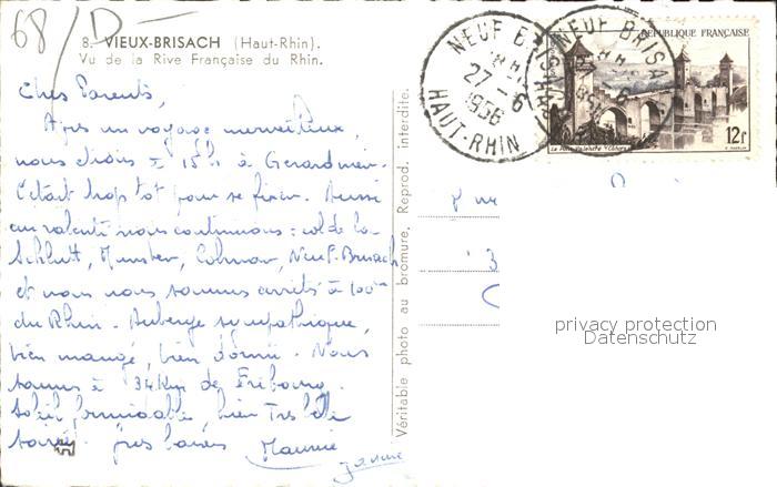 12038777 carte postale Neuf-Brisach Vue de la Rive Francaise du Rhin Muenster postalisch gelaufen Erhaltung siehe scans KatCode: 11170068268231