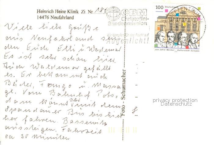73031829 alte Postkarte Neufahrland Heinrich Heine Klinik postalisch gelaufen Erhaltung siehe scans [KathaD81] KatCode: 11110012069017