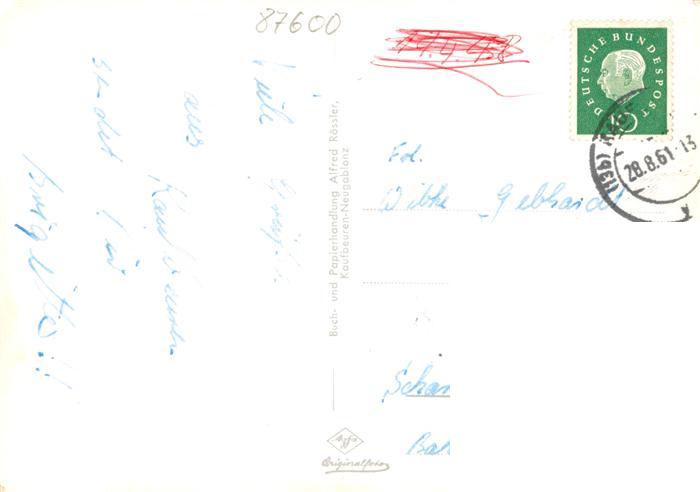 73871732 alte Postkarte Neugablonz Kaufbeuren Sudetenstrasse Neue Herz-Jesu-Kirche Haus der Gablonzer Industrie Staatliche Fachschule der Gablonzer Industrie postalisch gelaufen Erhaltung siehe scans [FriedD77] KatCode: 11110009762000