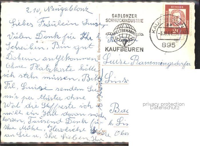 71848624 alte Postkarte Neugablonz Neuer Markt Haus der Industrie Herz-Jesu-Kirche postalisch gelaufen KatCode: 11110009762000