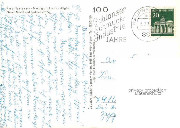 72775065 alte Postkarte Neugablonz Neuer Markt Sudetenstrasse postalisch gelaufen Erhaltung siehe scans [NatalD47] KatCode: 11110009762000