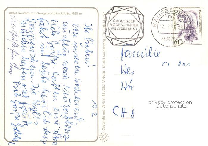 73574789 alte Postkarte Neugablonz Teilansichten Schmuckstadt Denkmal Freibad postalisch gelaufen Erhaltung siehe scans [FriedD77] KatCode: 11110009762000