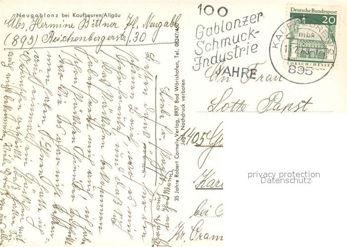 73671558 alte Postkarte Neugablonz Wohnsiedlung Kirche Stadtzentrum postalisch gelaufen Erhaltung siehe scans [FriedD77] KatCode: 11110009762000