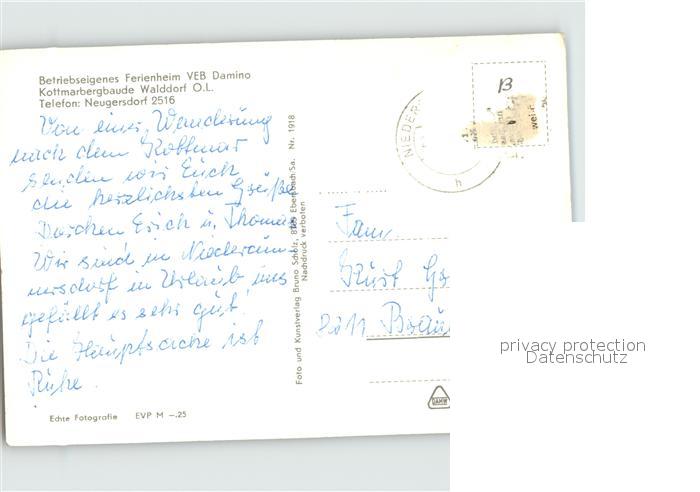 72413163 alte Postkarte Neugersdorf Sachsen Betriebseigenes Ferienheim VEB Damino Koffmarbergbaude Walddorf postalisch gelaufen Erhaltung siehe scans KatCode: 11110014286260