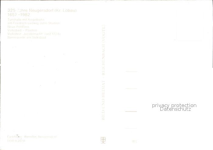 72322740 Neugersdorf Sachsen Turnhalle Friedr Ludwig Jahn Stadion Poliklinik Volksbad Pavillon Volksfest Jakobsmarkt Spreequelle am Volksbad postalisch nicht gelaufen Erhaltung siehe scans KatCode: 11110014286260