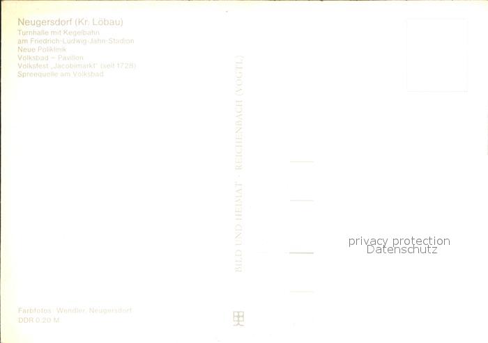 72124722 Neugersdorf Sachsen Turnhalle mit Kegelbahn Friedr Jahn Stadion Neue Poliklinik Jacobimarkt Spreequelle am Volksbad postalisch nicht gelaufen Erhaltung siehe scans Alte Ansichtskarte Postkarte Wern Katcode 11110014286260
