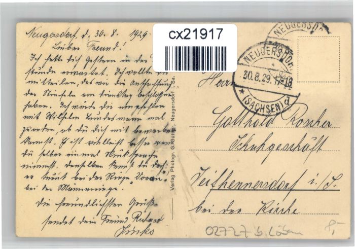 30740137 alte Postkarte Neugersdorf Sachsen Turnhalle postalisch gelaufen KatCode: 11110014286260