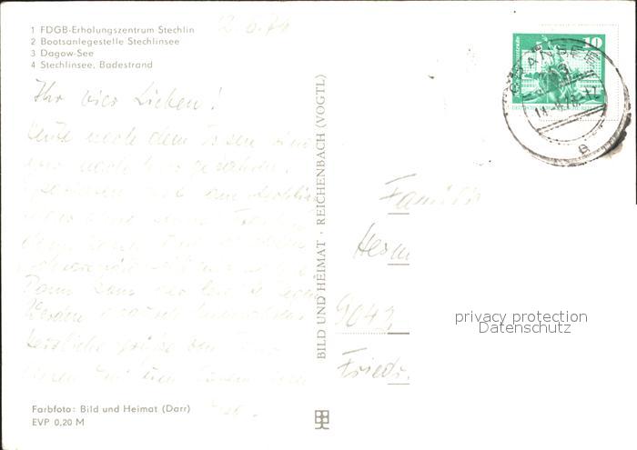 72056950 alte Postkarte Neuglobsow FDGB Erholungszentrum Stechlin Bootsanlegestelle Stechlinsee Dagowsee Badestrand postalisch gelaufen Erhaltung siehe scans KatCode: 11110012065310