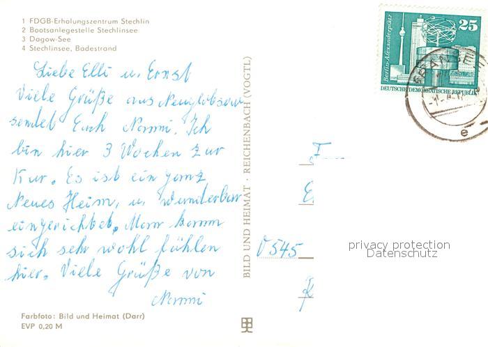 73026282 alte Postkarte Neuglobsow FDGB Erholungszentrum Stechlin Dagow See Stechlinsee Badestrand postalisch gelaufen Erhaltung siehe scans [KathaD81] KatCode: 11110012065310