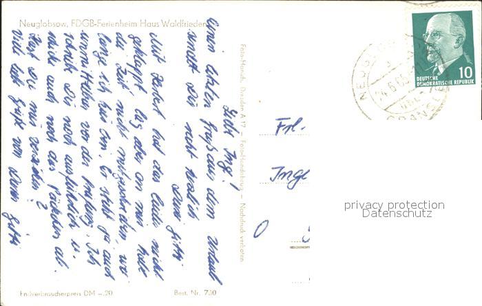 72058300 alte Postkarte Neuglobsow FDGB Ferienheim Haus Waldfrieden postalisch gelaufen Erhaltung siehe scans KatCode: 11110012065310