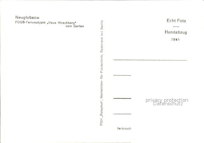 72461819 Neuglobsow FDGB Ferienobjekt Haus Hirschberg Garten Terrasse postalisch nicht gelaufen Erhaltung siehe scans KatCode: 11110012065310