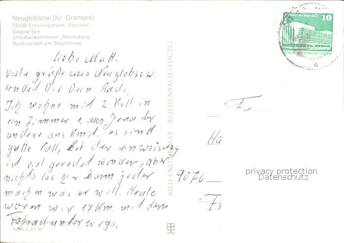 72372796 alte Postkarte Neuglobsow FDGB Heim Stechlin Strand See postalisch gelaufen Erhaltung siehe scans KatCode: 11110012065310