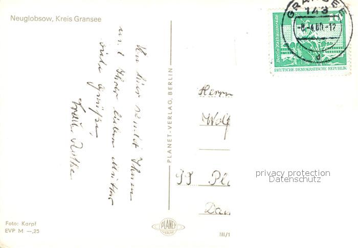 73593437 alte Postkarte Neuglobsow Partie am Stechlinsee Badesteg Strand postalisch gelaufen Erhaltung siehe scans [FriedD77] KatCode: 11110012065310