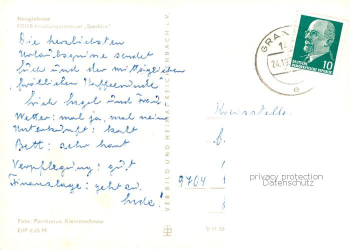 73870883 alte Postkarte Neuglobsow Stechlin FDGB Erholungsheim Stechlin postalisch gelaufen Erhaltung siehe scans [WerneD78] KatCode: 11110012065310