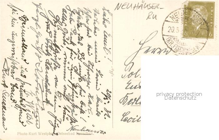 old postcard Neuhaeuser Ostpreussen Osteebad PL Strand Seebruecke postalisch gelaufen Erhaltung siehe scans [FriedD77]