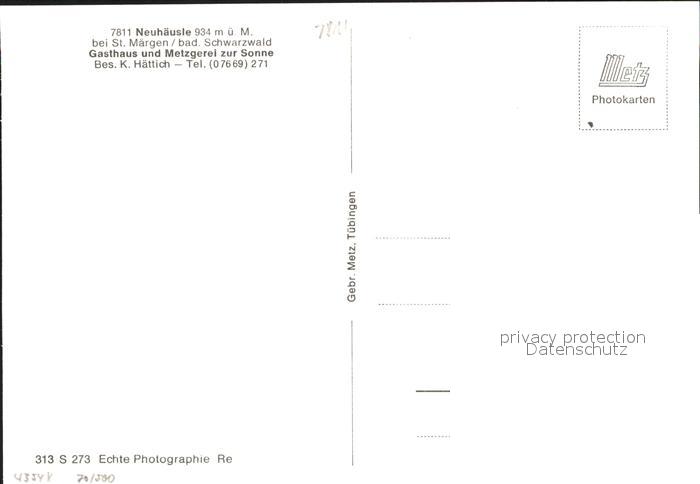31734776 Neuhaeusle Gasthaus Metzgerei zur Sonne postalisch nicht gelaufen Erhaltung siehe scans KatCode: 11110008315094
