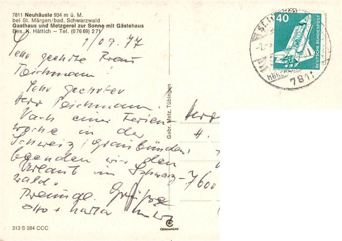73929402 alte Postkarte Neuhaeusle Gasthaus Metzgerei zur Sonne mit Gaestehaus postalisch gelaufen Erhaltung siehe scans [FriedD77] KatCode: 11110008315094