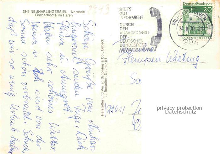 74154803 alte Postkarte Neuharlingersiel Fischerboote im Hafen postalisch gelaufen Erhaltung siehe scans [WerneD78] KatCode: 11110003462010