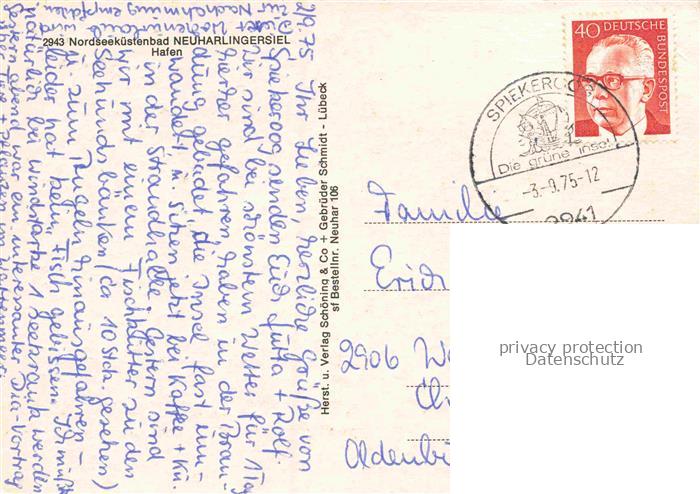 74154800 alte Postkarte Neuharlingersiel Fischerhafen postalisch gelaufen Erhaltung siehe scans [WerneD78] KatCode: 11110003462010