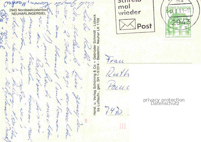 74132361 alte Postkarte Neuharlingersiel Hafen Fliegeraufnahme postalisch gelaufen Fliegeraufnahme Erhaltung siehe scans [FriedD77] KatCode: 11110003462010