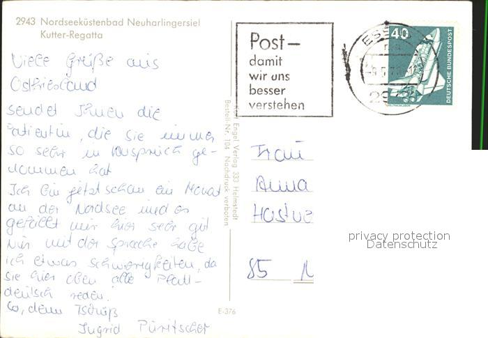 72026744 alte Postkarte Neuharlingersiel Kutter- Regatta postalisch gelaufen Erhaltung siehe scans KatCode: 11110003462010