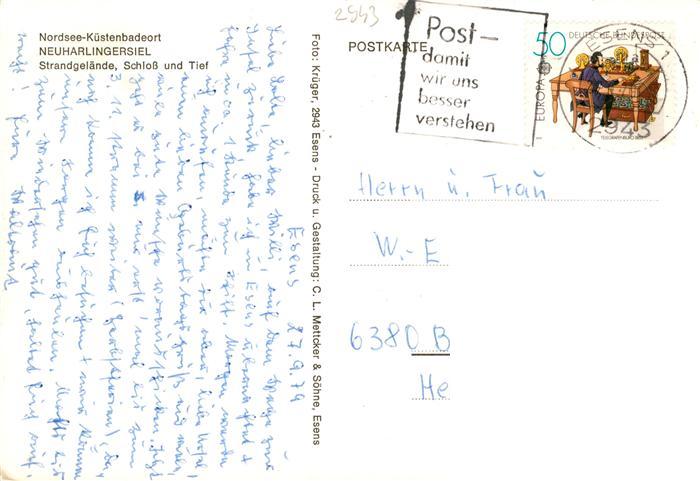 73930282 alte Postkarte Neuharlingersiel Strand Schloss und Tief postalisch gelaufen Erhaltung siehe scans [WerneD78] KatCode: 11110003462010