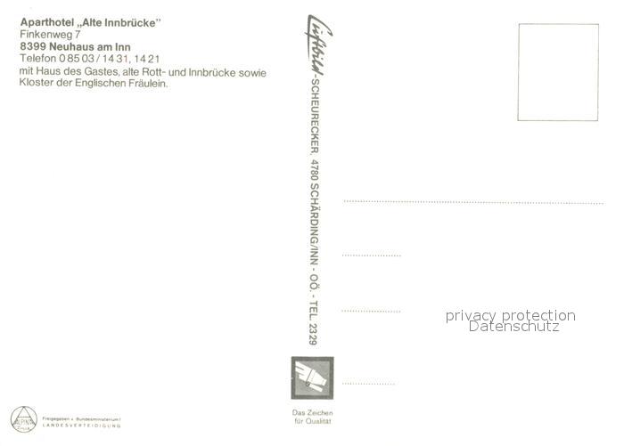 73360456 Neuhaus Inn Aparthotel Alte Innbruecke Erholungsgebiet Unteres Inntal und Rottal postalisch nicht gelaufen Erhaltung siehe scans [FriedD77] KatCode: 11110009275134