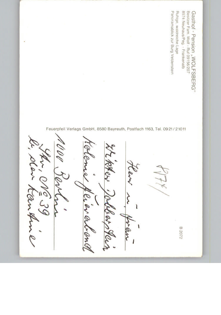 31163471 Neuhaus Pegnitz Gasthaus Pension Wolfsberg postalisch nicht gelaufen KatCode: 11110009574140