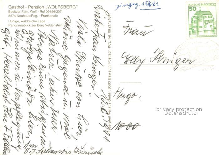 73664700 alte Postkarte Neuhaus Pegnitz Gasthof Pension Wolfsberg Gastraeume Burg postalisch gelaufen Erhaltung siehe scans [WerneD78] KatCode: 11110009574140