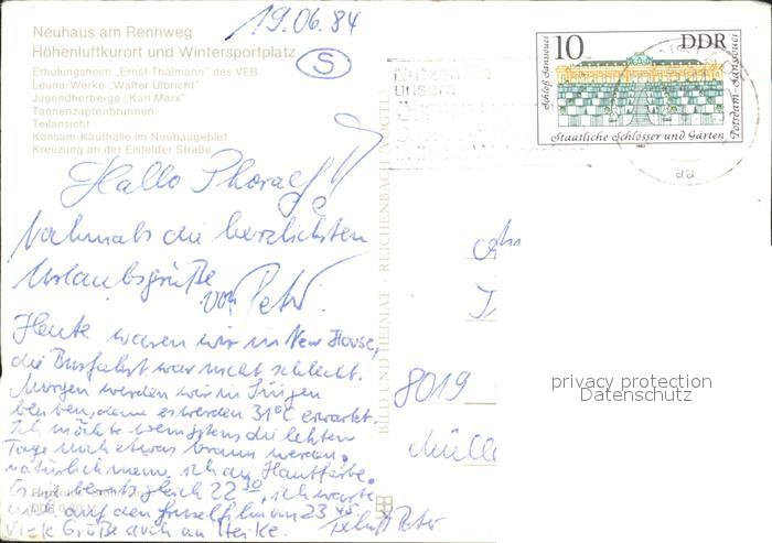 72369971 alte Postkarte Neuhaus Rennweg Erholungsheim Ernst Thaelmann Jugendherberge Karl Marx postalisch gelaufen Erhaltung siehe scans KatCode: 11110016072013