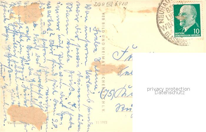73035661 alte Postkarte Neuhaus Rennweg Erholungsheim Ernst Thaelmann Leunawerke Walter Ulbricht postalisch gelaufen Erhaltung siehe scans [KathaD81] KatCode: 11110016072013